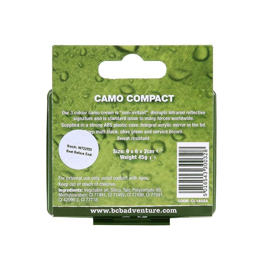 Le Stock Américain vous propose cette boite compatce de crèmes de camouflage 3 couleurs avec miroir de la marque BCB International. Livré dans un solide boitier en plastique ABS, Miroir acrylique intégré dans le couvercle.