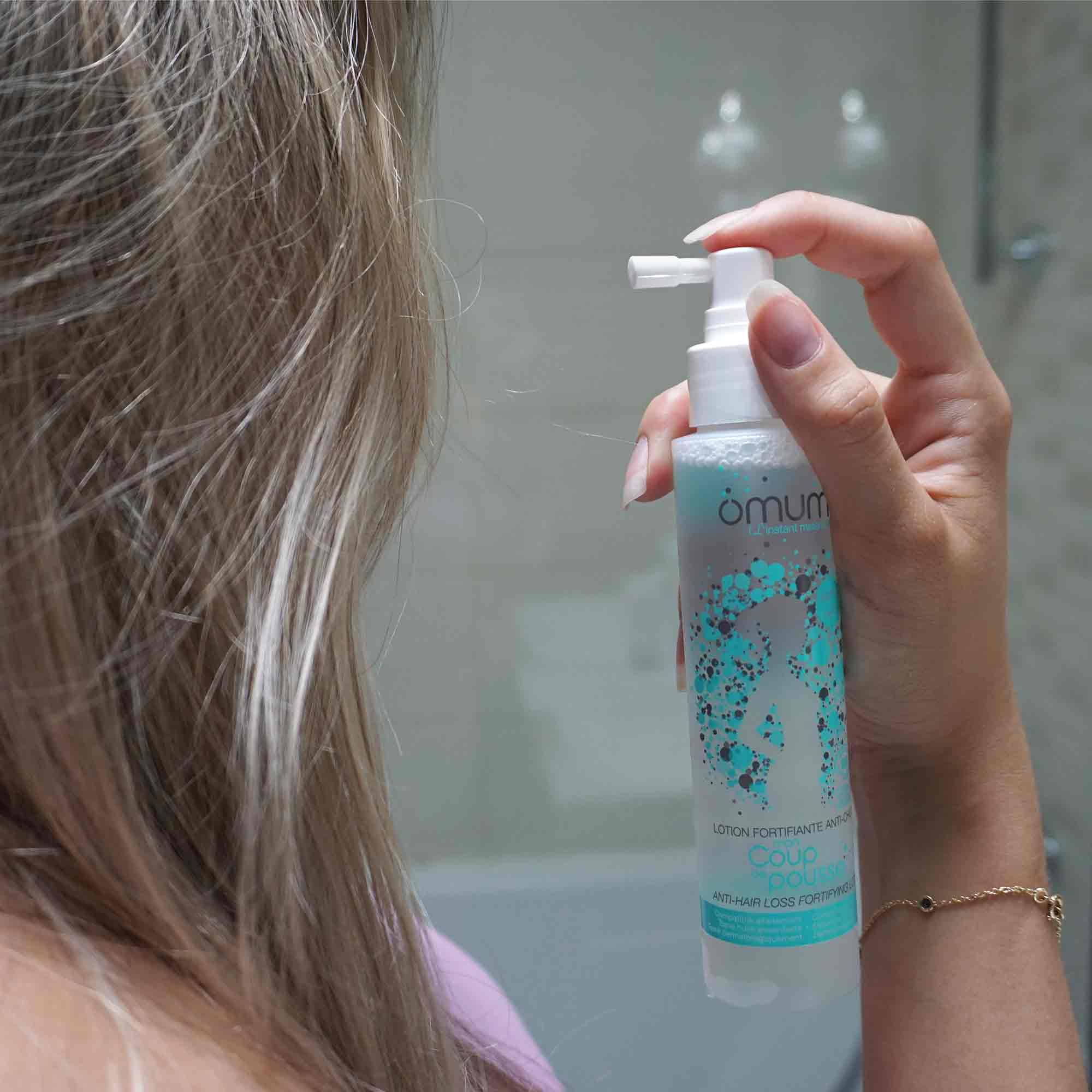 La lotion fortifiante et naturelle d’Omum est un indispensable pour stimuler la croissance des cheveux et ralentir leur chute.