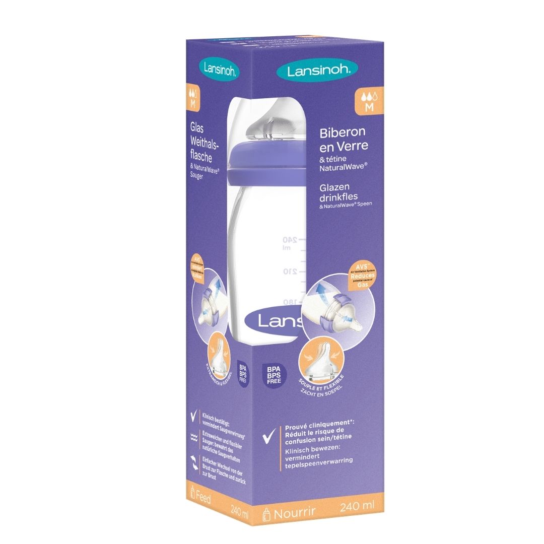 Le biberon en verre Lansinoh® et sa tétine péristaltique NaturalWave® sont spécialement conçus pour les bébés nourris au sein.