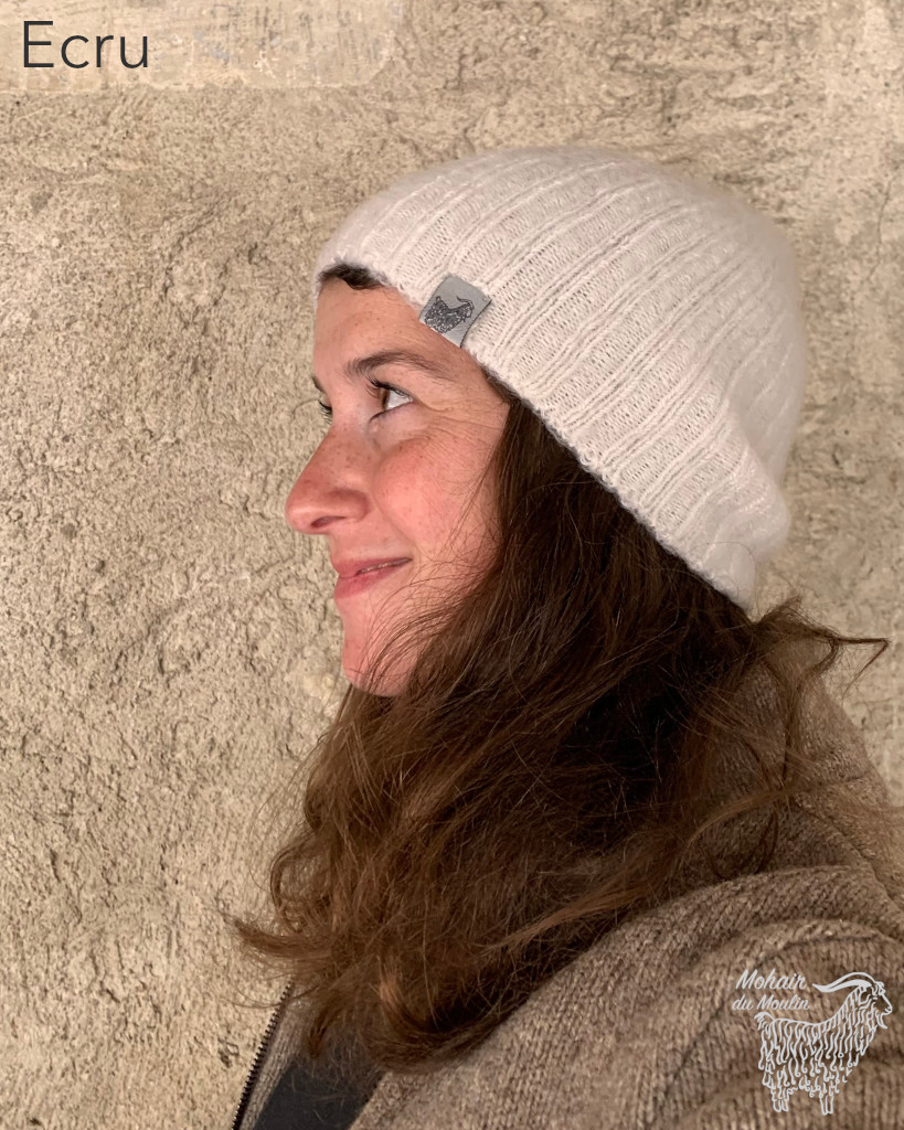 Ce bonnet à côtes en mohair est votre compagnon de l’hiver et des matins frais : il est très chaud et bien doux. Fait avec 3 fils de mohair de chevreau et soie, il vous apporte confort et chaleur. Tricoté intégralement ce bonnet est super confortable car sans couture. Il tient sur les oreilles sans serrer la tête trop fort. Bref, c’est le bonnet en mohair de base chaud et doux que tout le monde devrait avoir dans la poche de son manteau. Ce bonnet à côtes a un visuel sobre, avec des mailles bien resserrées, grâce à notre mohair.