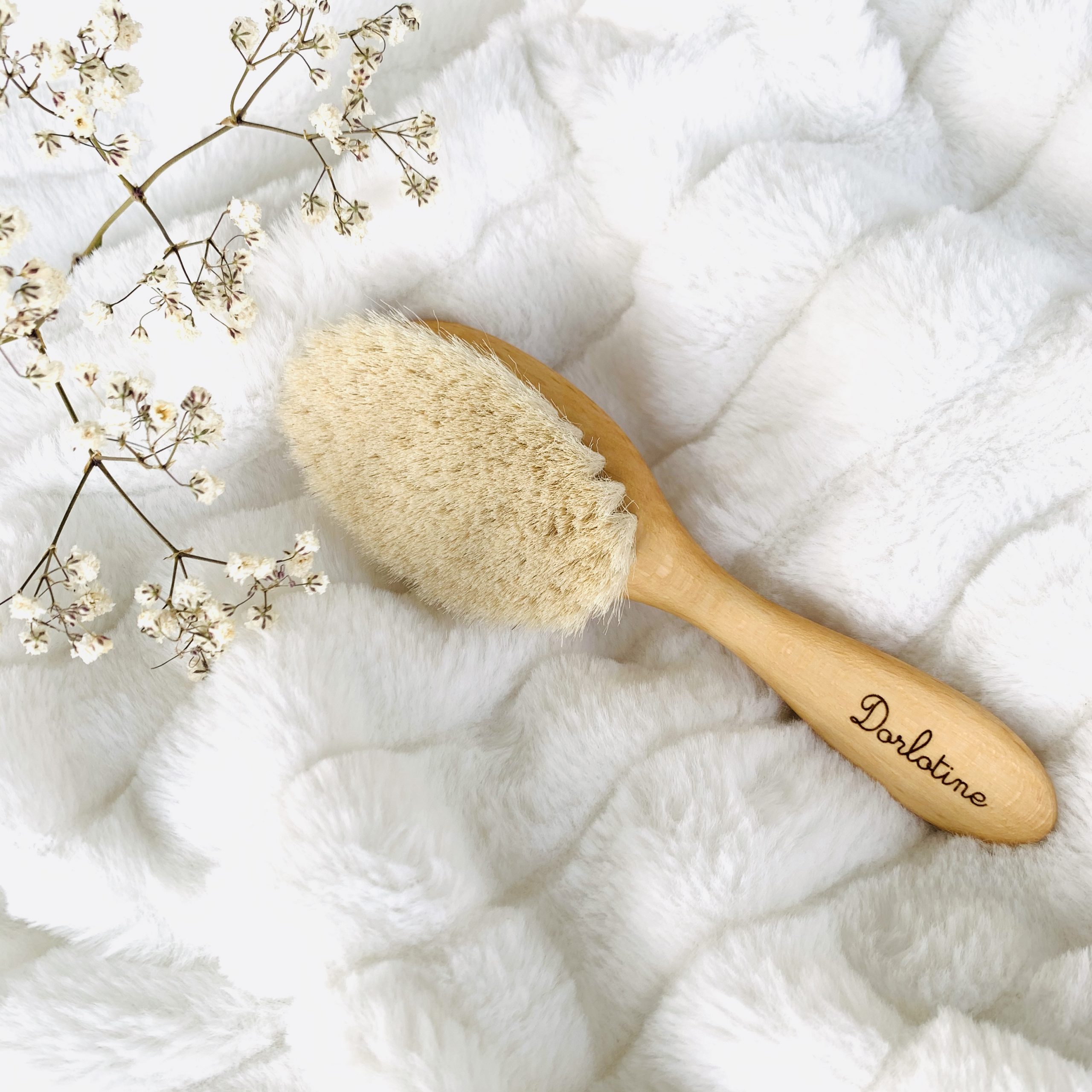 Fabriquée spécialement pour Dorlotine, cette petite brosse naturelle a été longuement étudiée pour arriver à un résultat parfait. Notre fabricant, renommé depuis plus de 80 ans, utilise d’anciennes techniques manuelles qui ne sont aujourd’hui maîtrisées que par peu de personnes. Le bois, du hêtre naturel ciré en fait un article robuste et durable. Les poils extrêmement doux qui constituent la brosse sont des poils de chèvre (garantie cruelty free) assemblés et taillés manuellement selon des méthodes de fabrication ancestrales.