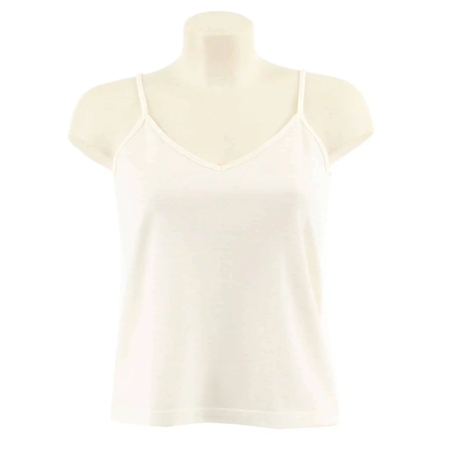 Le Caraco en 100% pure laine mérinos à fines bretelles, col V est idéal pour passer l’été.