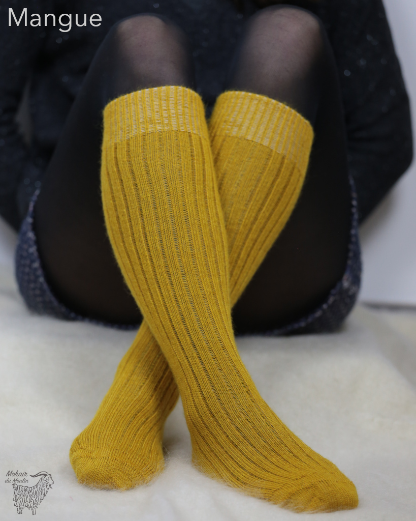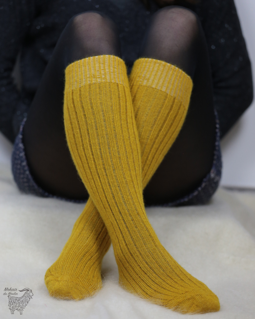 Résistantes, confortables, respirantes, nos chaussettes en mohair sont tricotées dans le Tarn, par l’entreprise Joly Chaussettes. Elles sont renforcées au bout du pied et au talon afin d’éviter une usure précoce. Composée à 80% en mohair de chevreau, nos chaussettes chaudes réconfortent rapidement, sans serrer, mais sans tomber non plus (c’est important !).