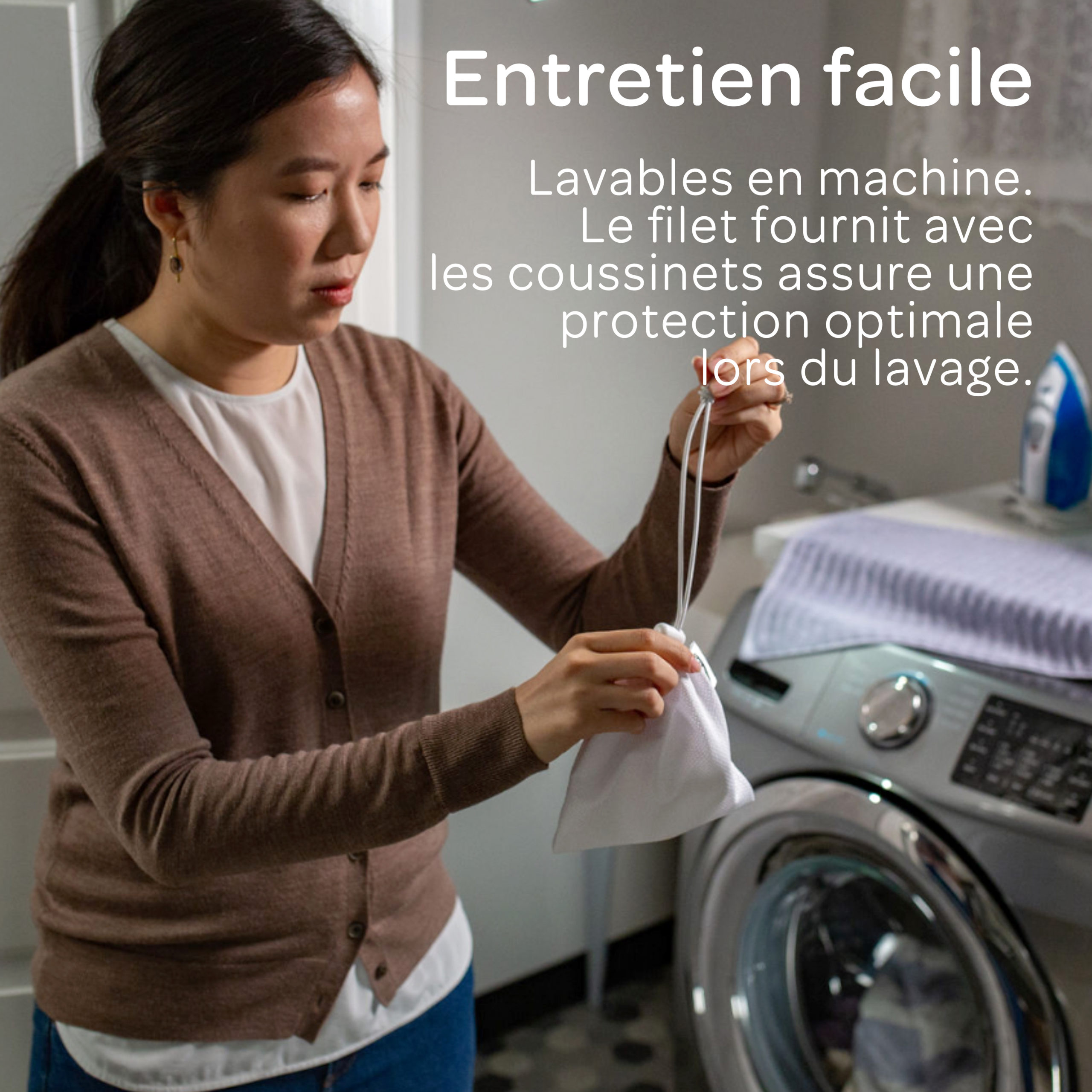 - Optez pour une utilisation durable & pratique : Les coussinets réutilisables peuvent être lavés en machine à 40°, à l’intérieur du sac de protection inclus dans le pack
