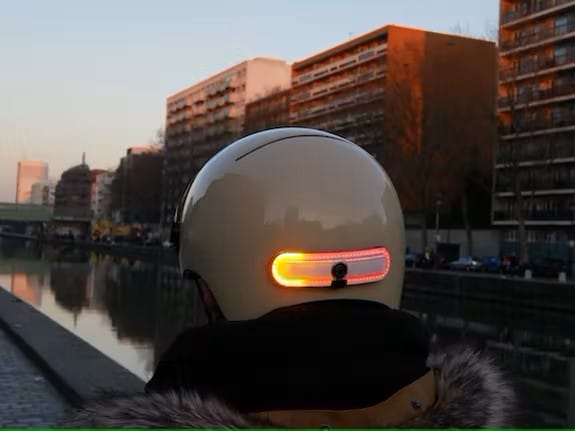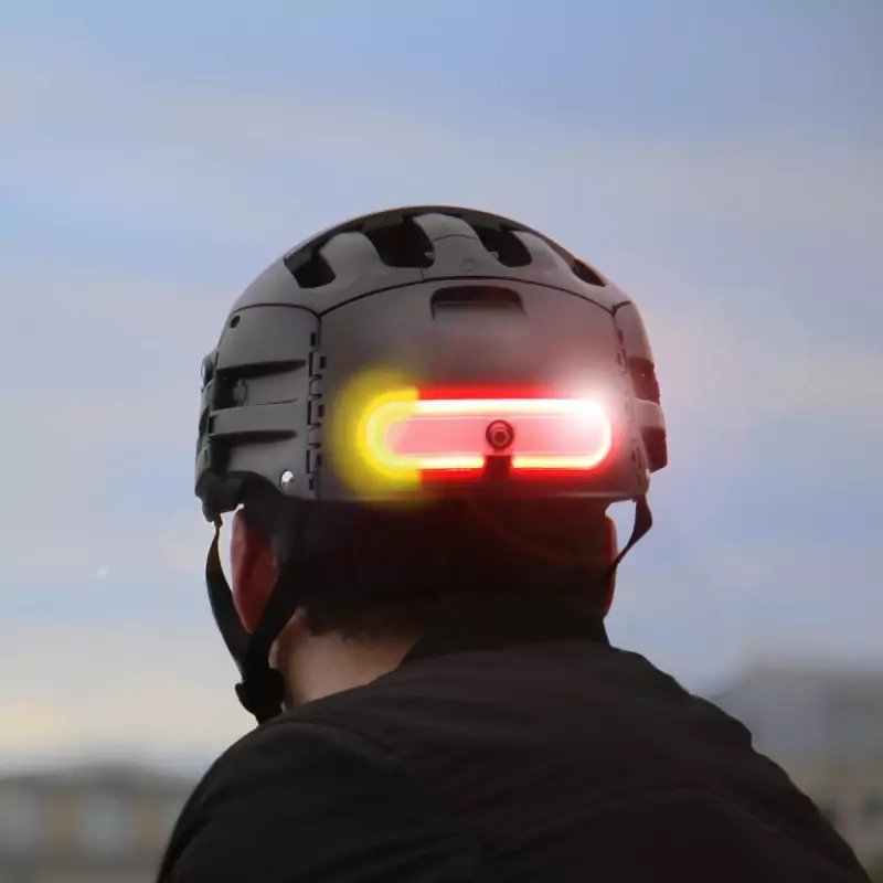 Eclairage de casque amovible OxiTurn Starter est doté de clignotants directionnels pilotables via télécommande au guidon. Il offre une visibilité accrue pour les cyclistes (urbains). Il augmente ainsi leur sécurité sur la route.