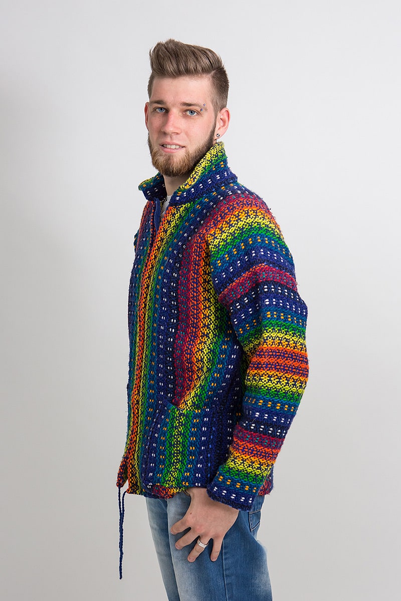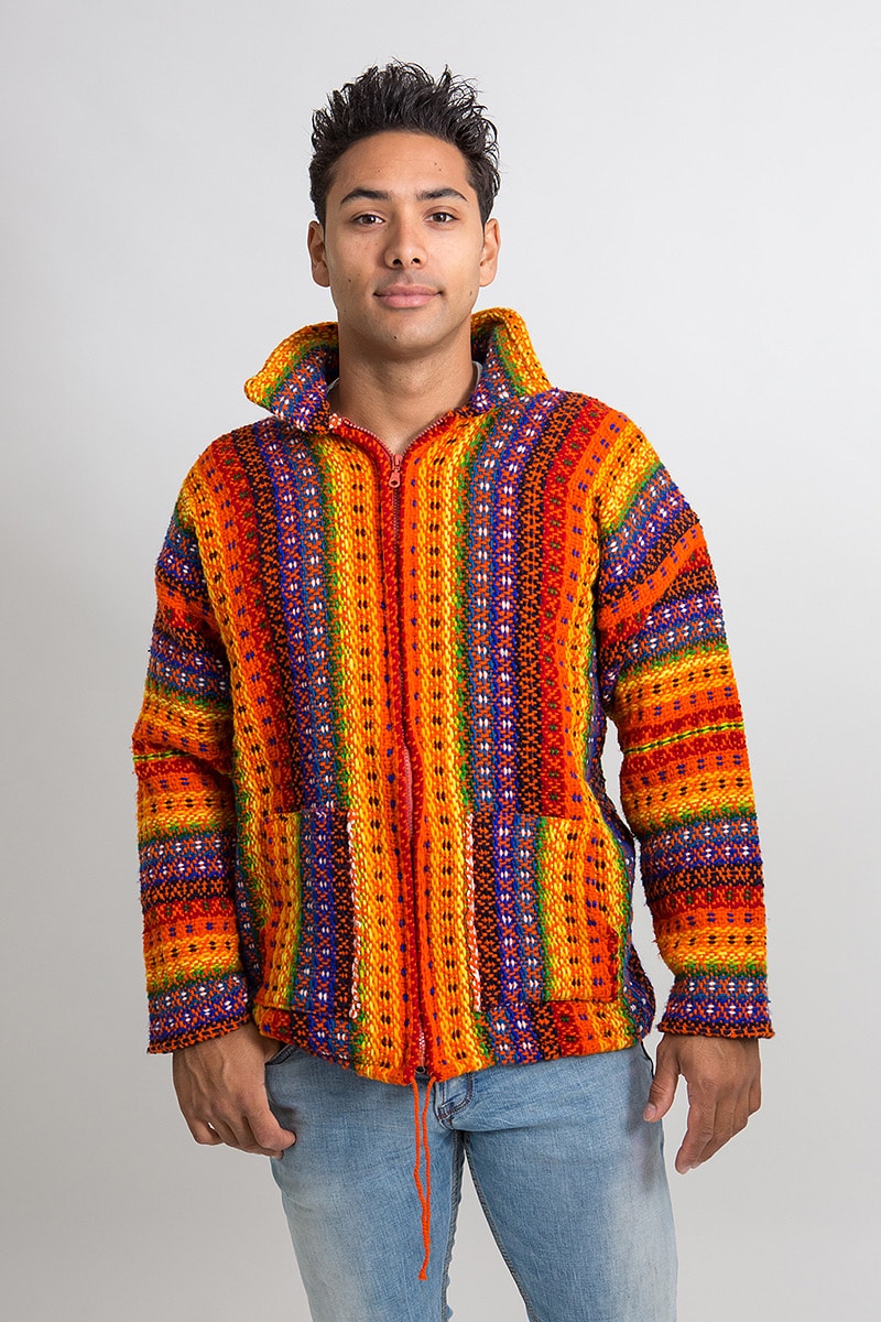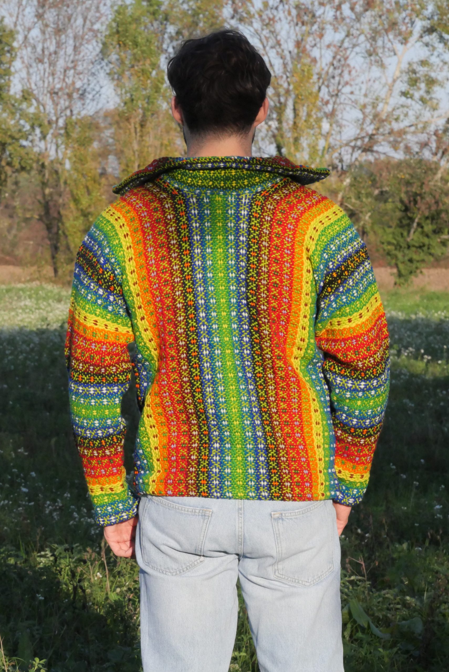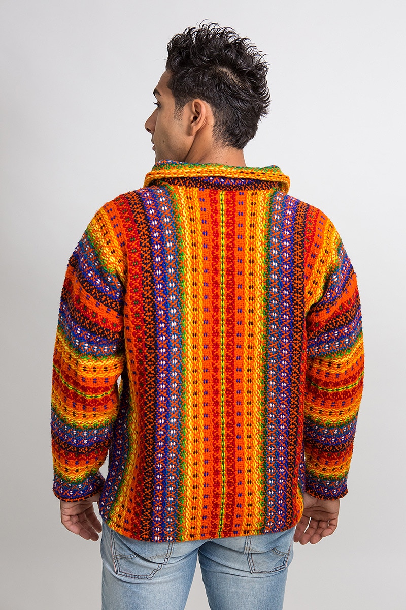 Gilet en laine de mouton et laine d’alpaga, mixte, pour hommes et femmes, tricoté par nos créateurs-artisans péruviens. Modèle lumineux et chaleureux.