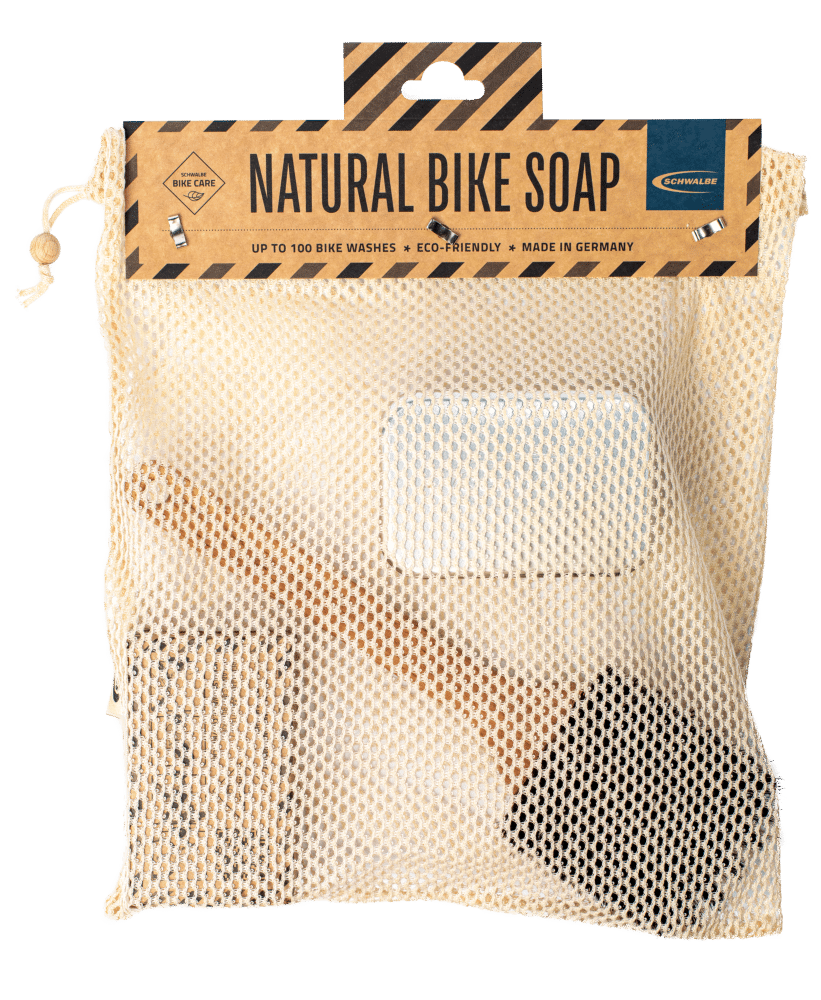 Excellent effet nettoyant, longue durée d’utilisation et ingrédients exclusivement naturels : le nouveau “Natural Bike Soap” de Schwalbe est un produit qui allie le respect de l’environnement au meilleur pouvoir nettoyant. Entièrement fabriqué en Allemagne à partir de substances naturelles, il est testé dermatologiquement, végétalien et sans microplastiques. C’est pourquoi ni les vernis ni les pneus ne sont attaqués lors du nettoyage. Le savon est 100% biodégradable selon l’OCDE.