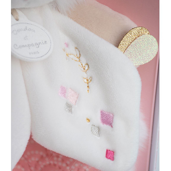 Un magnifique doudou lapin rose, bien au chaud dans son joli coffret cadeau, prêt à câliner bébé et à devenir son meilleur ami!