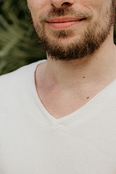 Maille tricotée en coton biologique, col en V.