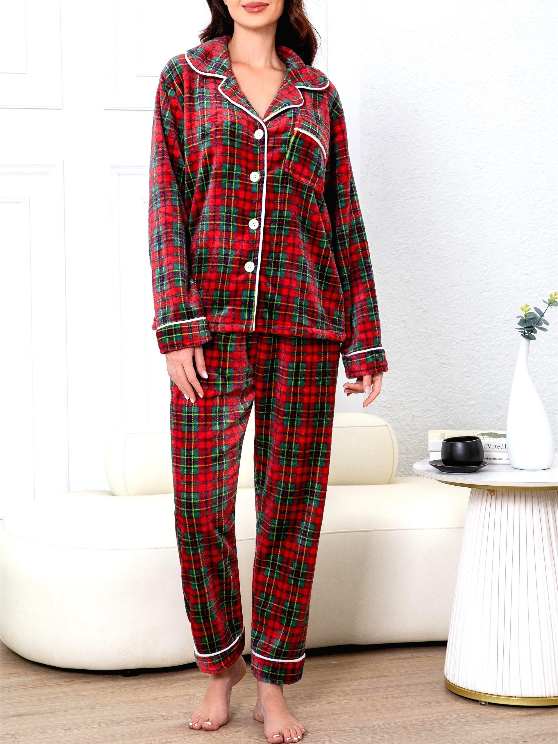Pyjamas Femme Nuit Flanelle: pour celles qui transforment le sommeil en un art raffiné de la détente totale, le tout enveloppé d’une touche de fantaisie, idéal pour de bonnes nuits bien au chaud!