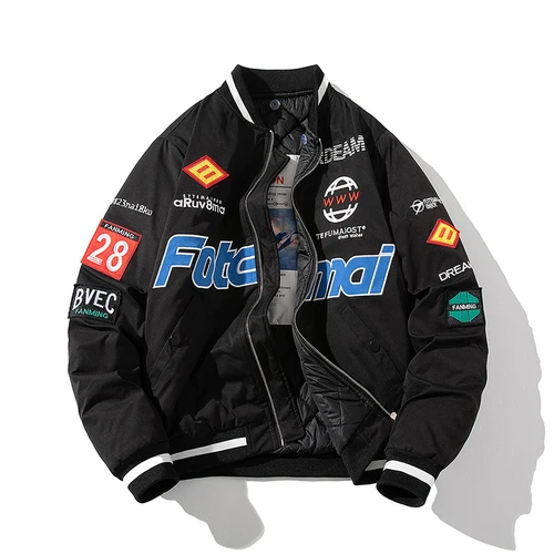 Affichant des logos et des broderies rappelant les uniformes de pilotes, cette veste allie performance et style.