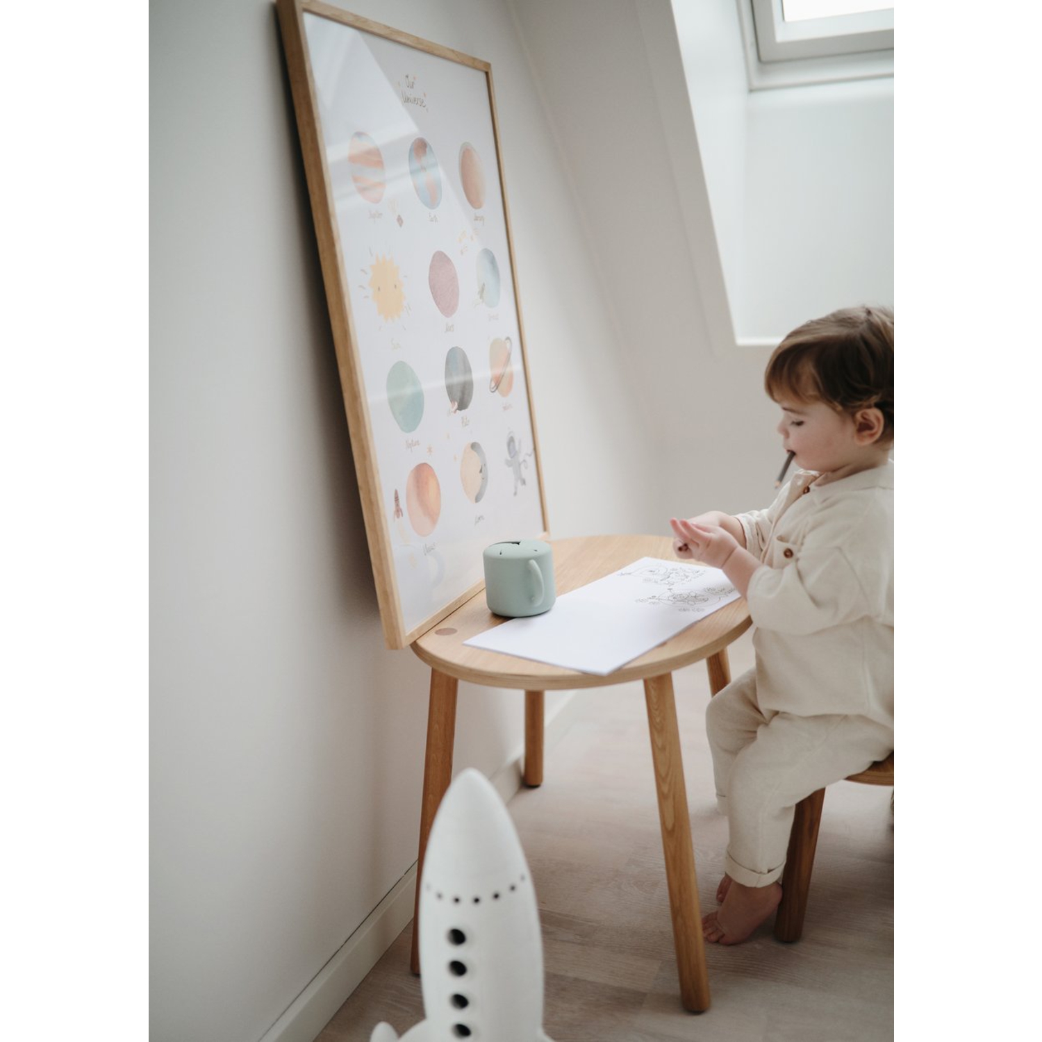 Une jolie tasse à poignées en silicone qui, grâce à sa fente, permet de transporter des petites gourmandises sans en faire tomber partout ! Un accessoire de repas incontournable pour les tout petits !