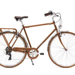 Cadre vert , selle et poignées et pneus marrons. Roues 26″ ou 28″