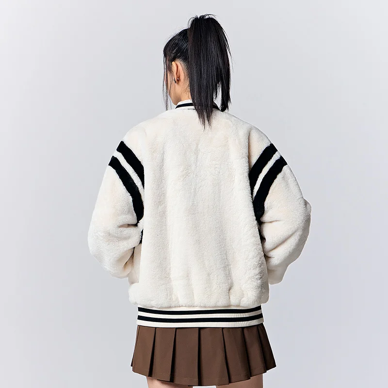 Avec son extérieur en fourrure douce et luxueuse, cette veste évoque une élégance intemporelle et un raffinement absolu. Les détails soignés tels que les boutons en métal doré et les finitions impeccables ajoutent une touche de sophistication à votre tenue, tandis que sa coupe ajustée assure une silhouette flatteuse et élégante.