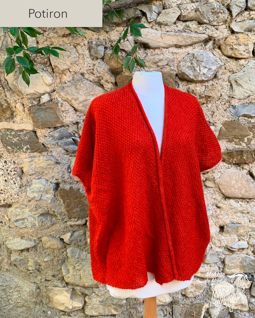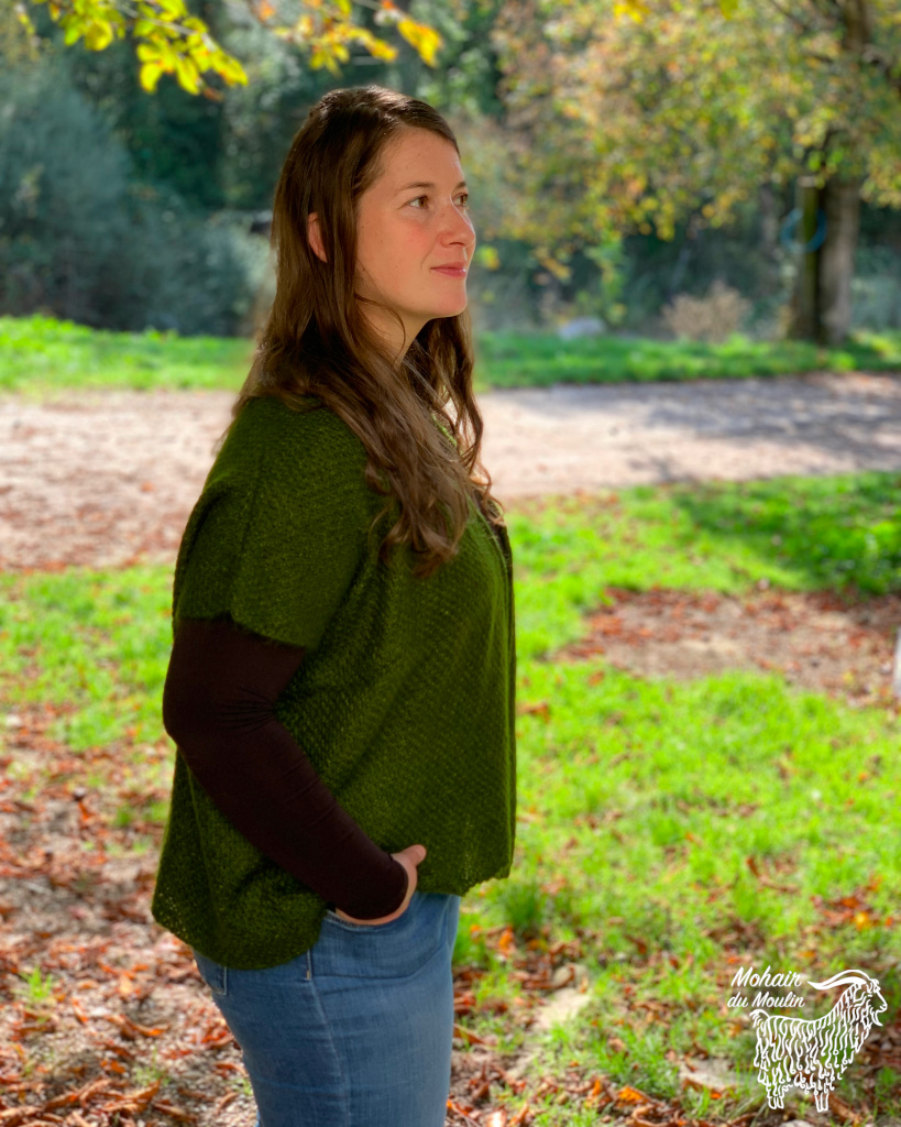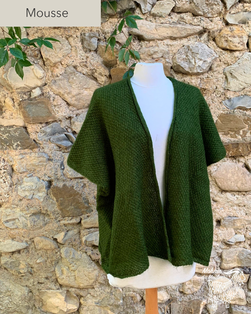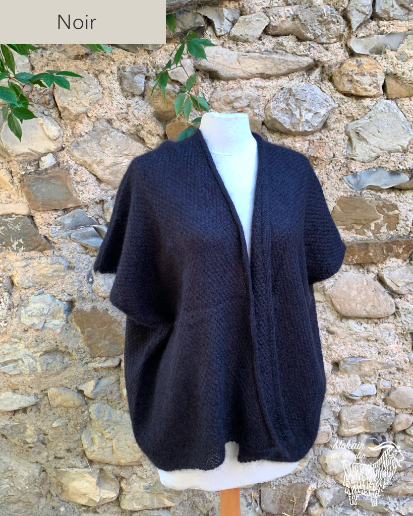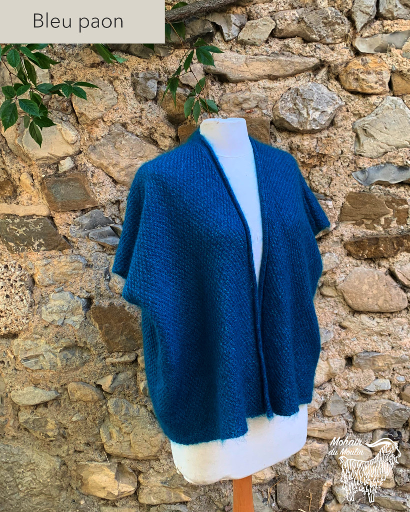 La veste cape en mohair est un indispensable de votre garde-robe. Son tombé fluide est élégant reste sobre et sans chichi. Le point utilisé est un point de riz, qui donne une texture visuelle gourmande. Enveloppante, la veste cape en mohair vous couvre de la nuque au bas du dos. Vous pouvez la porter croisée sur votre poitrine ou ouverte : c’est vous qui décidez. Cette veste est une taille unique, adaptée pour une grande variété de morphologie.