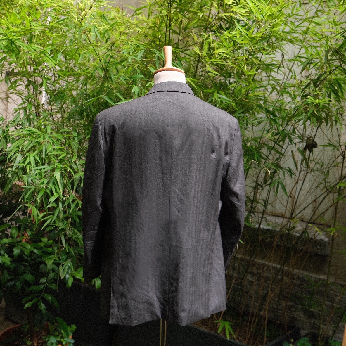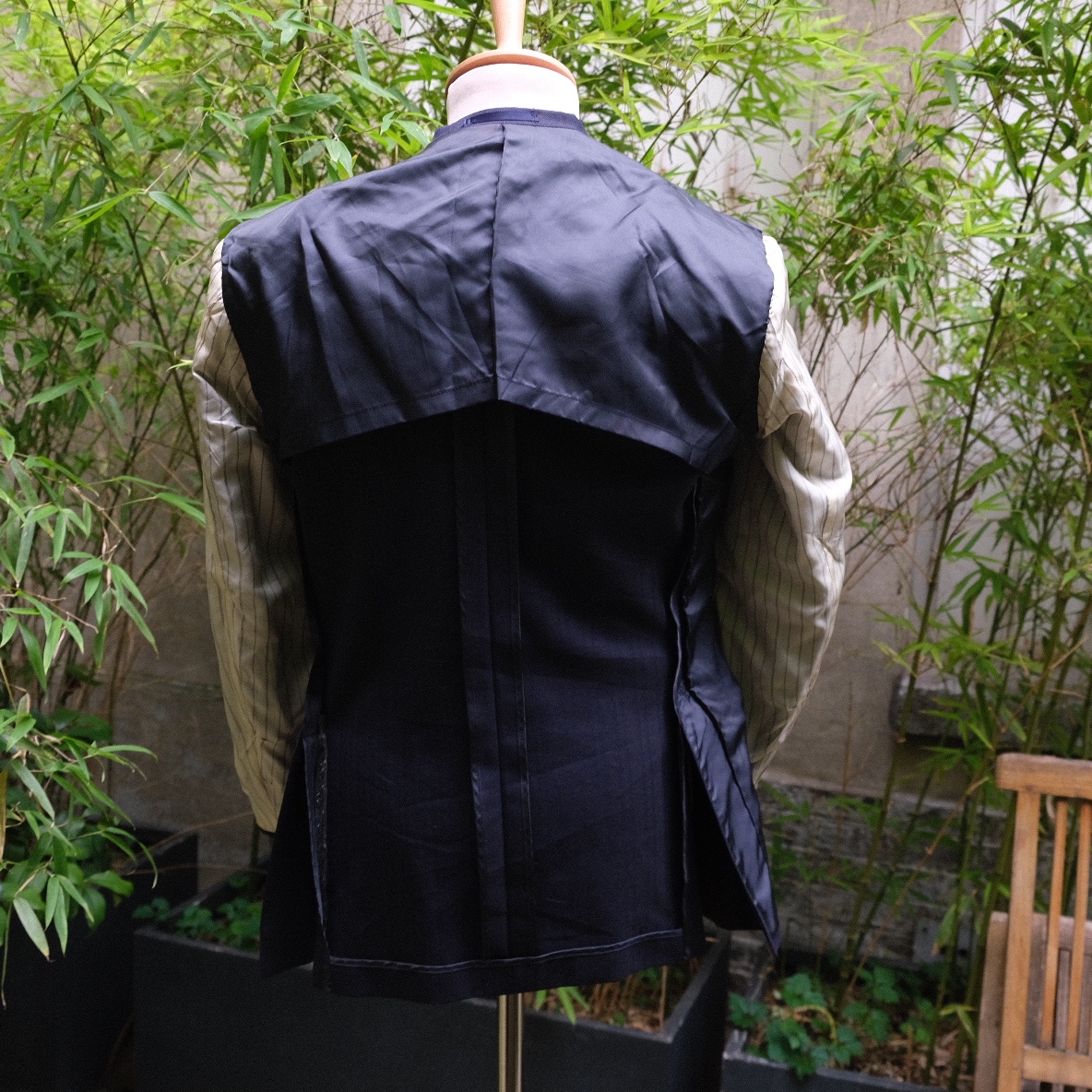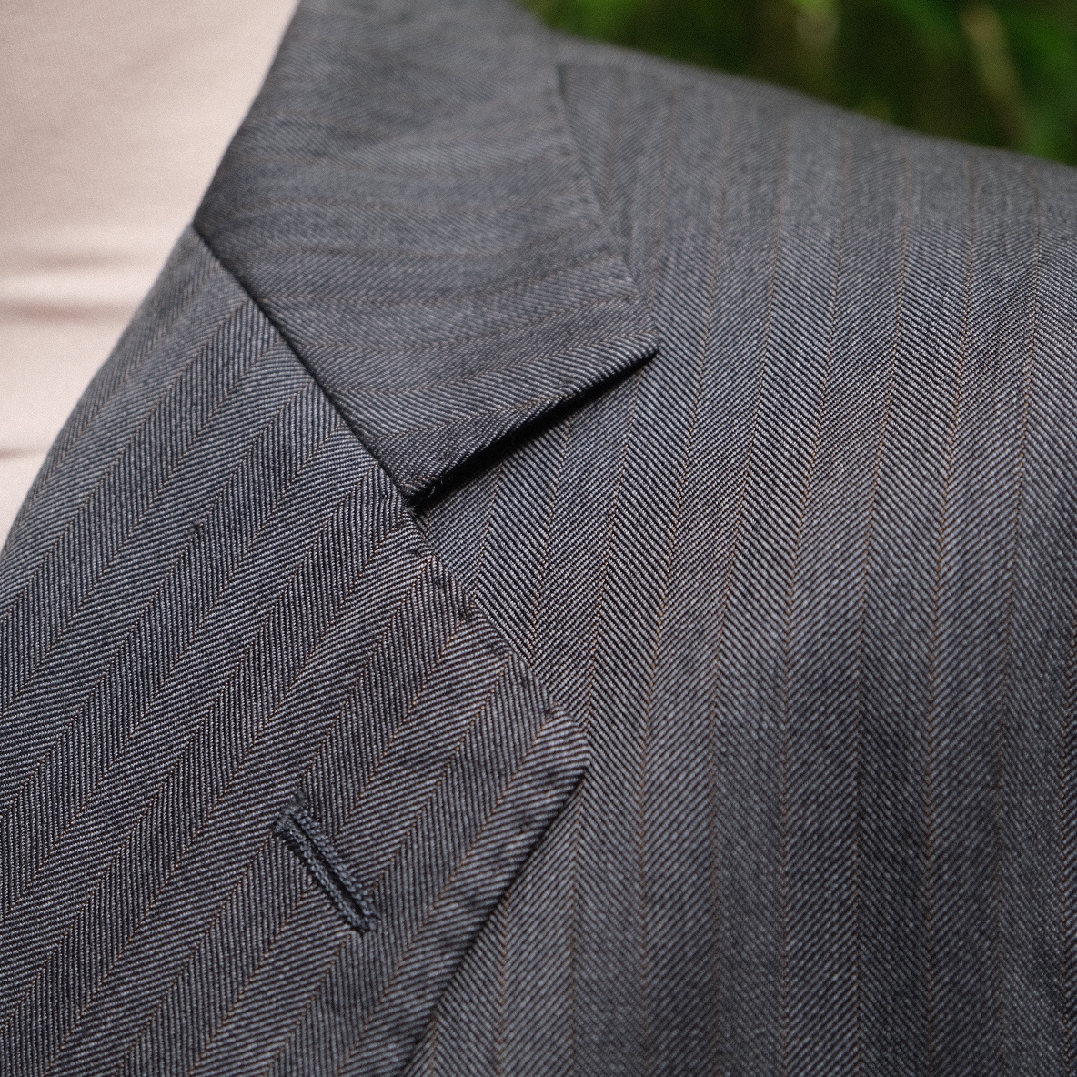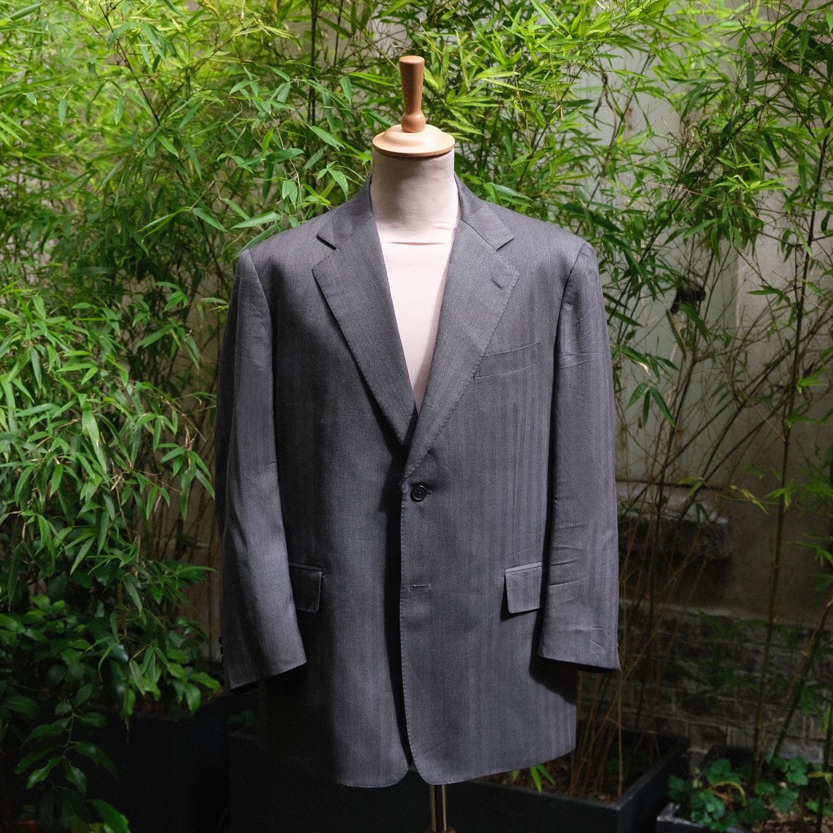 A première vue une veste grise business très classique, mais quand on y regarde de plus près des rayures marrons qui permettent à cette veste de bien se porter de manière dépareillée, avec par exemple un pantalon habillé taille haute beige. On apprécie sinon ses proportions équilibrées et ses revers à 9.5 cm.