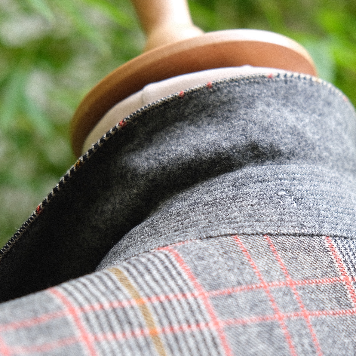 Probablement la flanelle la plus lourde et la veste la plus structurée qu’il m’ait été donné de voir: une vraie armure pour l’hiver. Malgré la qualité de la flanelle et de la confection globale, la parementure américaine est cependant thermocollée: je vous la propose donc sous les 100€.