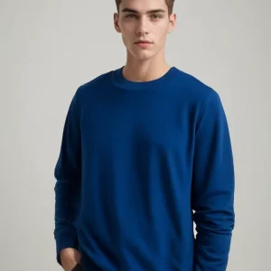 T-shirt femme laine mérinos manches longues col O maille côtelée